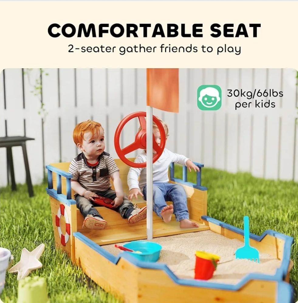 صندوق الرمل سفينة القرصان إختر عند الطلب هل مع رمل لعب عدد ٦ كيس رمل لعب وزن الكيس الواحد ١٠كيلو او بدون رمل - اللون كما بالصور المقاس : ١.٧٤ متر × ١ متر ارتفاع ٣٤ سم ارتفاع الساريه ١.٣٠ متر يشمل مجانا العاب رمل تختار من قبلنا معاول حفر واخرى . لايشمل تركيب . للطلب فضلا اتبع التالي :
