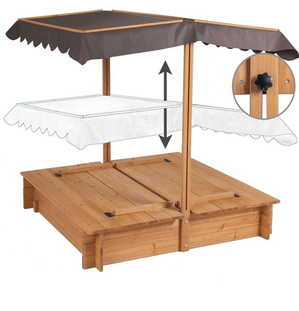 صندوق رمل للعب للاطفال بمظلة قابلة للتعديل لتصبح غطاء للرمال ( ملاحظه إختر من الخيارات بالسله هل ترغب المنتج برمال لعب ٨ كيس رمل طبي رطب للعب طبيعي وزن الكيس ١٠كيلو اوبدون ) المنتج بكرااسي قابله للاقفال ومظله قابله للتعديل للاتجاهات حسب الظل وللاسفل للتغطيه والتحكم بالارتفاع حسب رغبتكم الطول ١.٢٠ متر العرض ١.٢٠ متر ارتفاع المظله ١.٣١ متر - مخصص لعمر من ٣ الى ٨ سنوات وليس للكبار لايشمل تركيب و لاتحاول انت التركيب احضر عامل موبيليا اوديكورات للتركيب غيرقابل للارجاع اوالاستبدال الا بمغلفه الاصلي ولم يستعمل لايشمل العاب رمل اطلبوا من قسم العاب الرمل بالمتجر وسيضاف لطلبك وللطلب فضلا اتبع التالي :