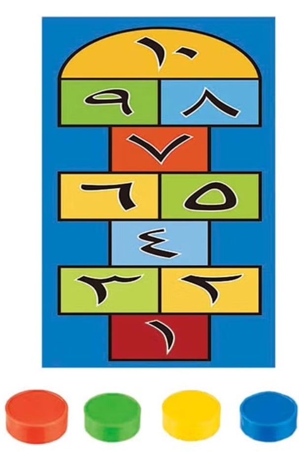 لعبة بساط المربعات الملونة تسمى ( الحجلة فديماً ) مع ٤ نرد ملون للرمي . مصنوع من اجود الخامات ارفام عربي . تجمع الاصدقاء والعائلة معاً للاستمتاع بالكثير من المرح والضحك . تبقي الطفل مشغولاً باللعب الابداعي التشاركي . الوان مفيد للتطور البصري المقاس ١.٢٠ م للطلب :