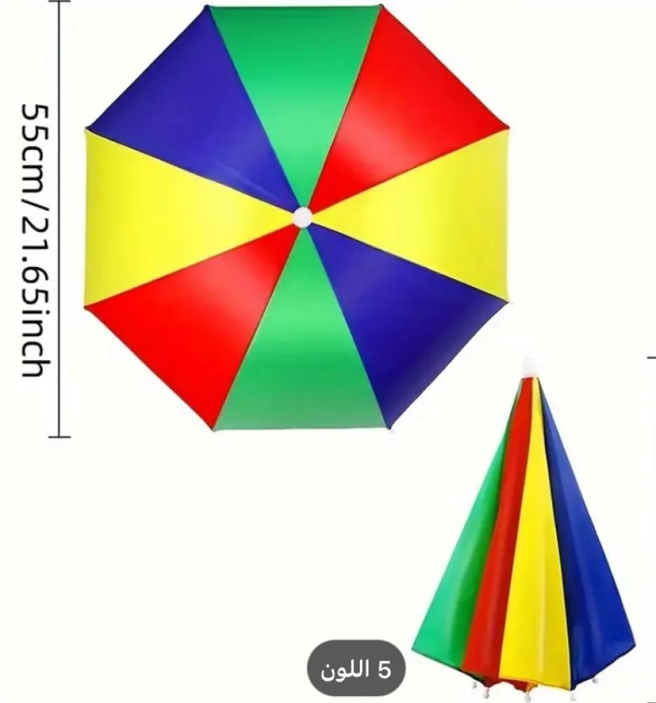 مظلات للراس تقي من الشمس والاشعة والامطار بمثلت للراس ( شاهد الفيديو ) تستخدم عند الخروج للشارع او الرحلات اوا زيارات خارجية متوفره بالوان ازرق - ملون قوس قزح - مموه . اضغط على اللون المناسب لك عند وضع المنتج بالسلة . المقاس موضح بالصور محيطي دائري. للطلب فضلاُ اتبع التالي :